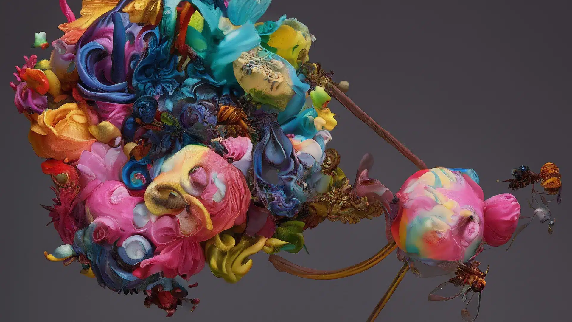 Marking the momentous occasion of the foundation’s 15th year, the Gujral Foundation presents The Impossible Bouquet in association with Volte Art Projects, a solo exhibition by internationally renowned multidisciplinary artist Raghava KK. Exhibiting his cutting-edge series of impossible juxtapositions as a continuation of his pioneering encounter with AI, Raghava uses the image of the bouquet–a gift, a transient composition, a vulnerable arrangement–to unify the show. What is usually perceived as a symbol of aesthetic beauty, thoughtfully arranged and pleasing, comes to life in the artist’s series in the form of strange, even impossible, material; recycled plastic, food, intimate parts of the body, hand-blown glass fused with metal.