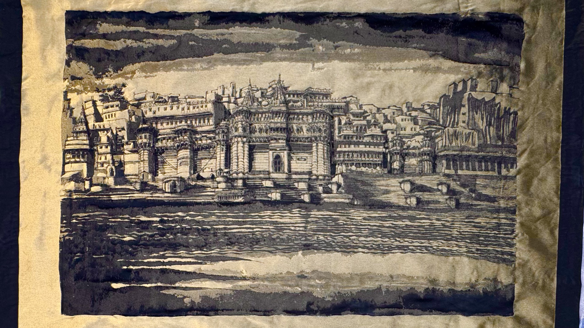 Developed during a recent residency across India, the works respond to specific locations including Basubati Palace in Calcutta, alongside Jodhpur and Benaras. Each piece reflects a direct engagement with built form and environment, registering the physical and spatial conditions of the site.