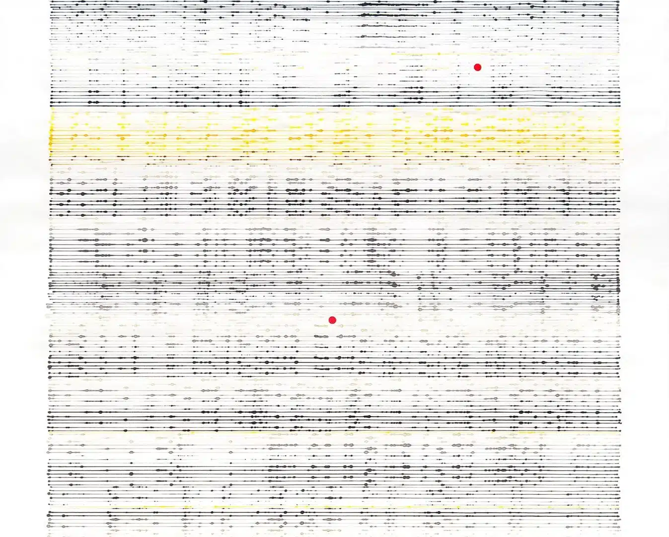 Compositionally these works are inspired by geometric abstraction and color field paintings, the process transitioning from digital to traditional mediums of drawing and painting. The algorithmic aesthetics of these works pushes into focus both the functional (generative) and dysfunctional (glitch) nature of code as a tool for expression. His works resemble a brain scan or a heart monitor, their pulsing beats syncopated by contrasting colors.