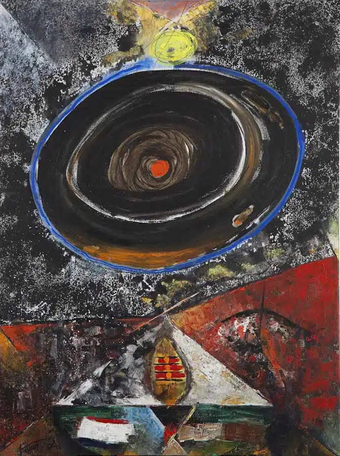 The show explores Shinde’s expansive artistic trajectory. Gallerist Sanjana Shah says, “Afflicted by depression and alcoholism towards the end of his life, Shinde nonetheless continued to believe in the power of art and its ability to connect and transform. He was a rare combination of both realist and idealist, often stating that he knew the pain of life may never dim, but at least through a painting he can raise it to the level of a shared experience. Though Vijay is no more with us, his works remain as testament to a life creatively lived, the pain and pleasure merging on the canvas, the colours still vibrant with energy.”