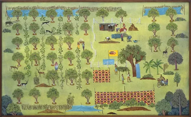 193 Gallery presents, Vocabularies of a Shifting Landscape, works by Pavan Kavitkar, engaging with landscapes that are neither utterly untouched nor destroyed, but continuously modified. Measured, divided, and rebuilt through human intervention, the works represent scapes as environments we inhabit and inherit. Rendered in watercolours, oil colours, and gouache, drawing on a strong technique based on Indian miniature painting and the Bengal School of Art, (emerged in 1905), the works foreground resistance to colonial academic realism. The details and anecdotes within his paintings form visual vocabularies of change, observed directly in his surroundings. They appear through buildings under construction, scaffolding, blue metal roofing sheets, barbed wire cutting through land, and irrigation systems extracting water for excessive farming. The lives and routines of migrant workers, villagers, and inhabitants unfold within these conditions. The exhibition brings together a new series of artworks depicting landscapes shaped by growing tension and changing patterns on land. His compositions depict intricate details of everyday life that exist between imagination and contemporary reality.