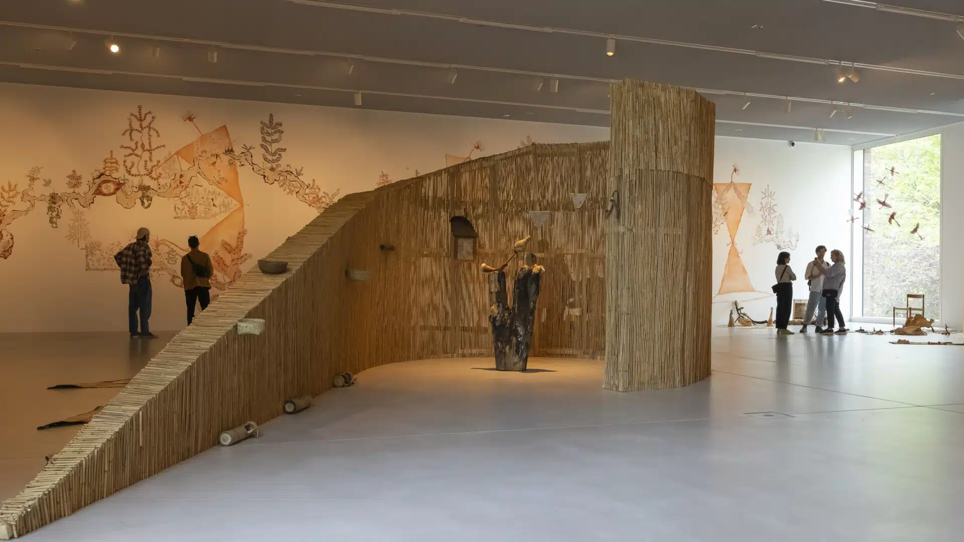 The exhibition is the outcome of a collaboration that started over a year ago with a group of Warli Adivasi artists and farmers from Ganjad who lead a reforestation initiative in their village that also includes cultural practice. This includes the traditional Gond method of the tribal Madhya Pradesh community, as developed by artist Roshni Vyam as well as Warli painting from Maharashtra by artists Mayur and Tushar Vayeda.