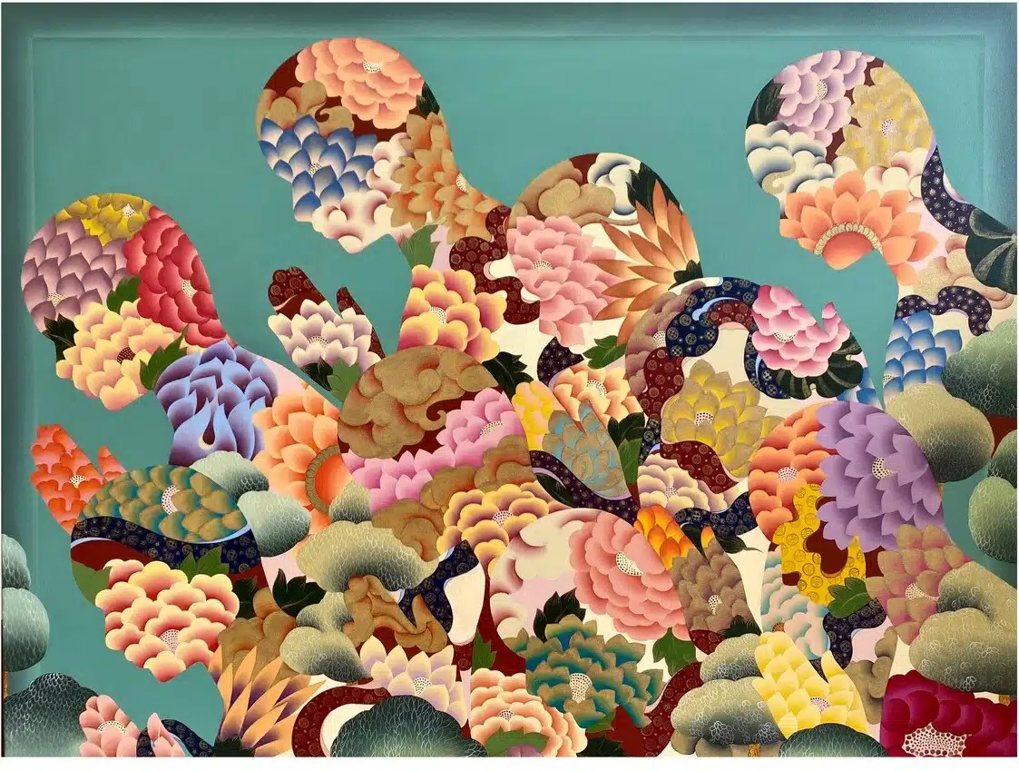 Using Thangka art from Dharamsala and Bhutan, she has taken upon herself the mantle of representing the timeless Thangka tradition for a larger audience, infusing it with a contemporary spirit that resonates with modern sensibilities. The essence of her artistic project lies in the seamless conversation she seeks between an ancient Oriental form, and modern and contemporary concerns and themes. Nature, human beings, and interiority fuse in her work in a seamless, semi-abstract, inclusive and all-embracing continuum.