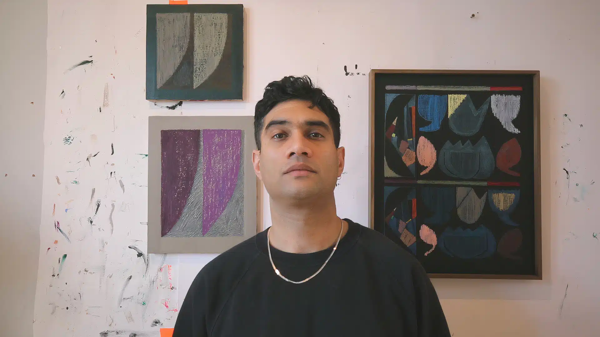 Artist Haroun Hayward creates rhythms with oil paints, sticks, scalpels and brushes on wooden panels. His large panels are often sectioned into richly coloured abstract forms, reflective of his multicultural background and experience. The forms repeat within and across his paintings, creating visual patterns for us to follow, as if we were listening to music.