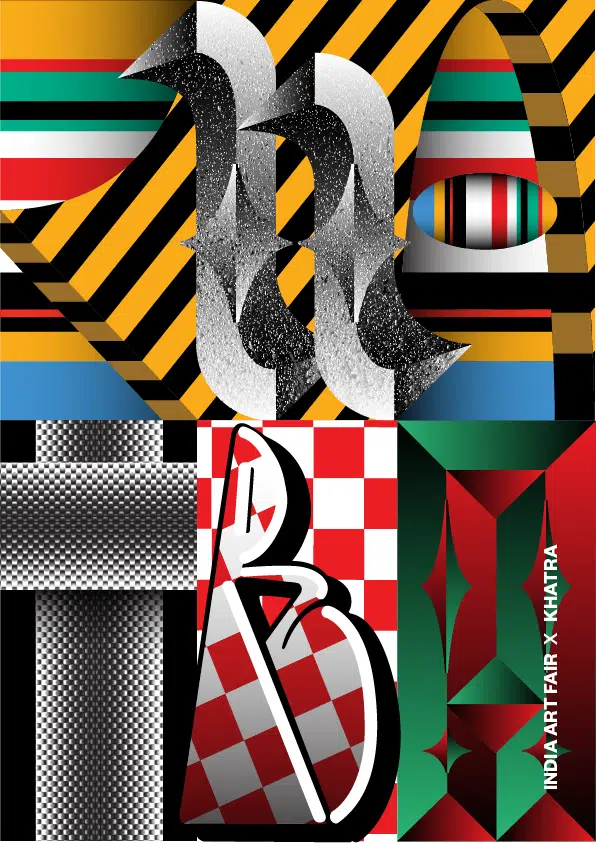 Siddharth Gohil goes by the alias, Khatra, a tongue-in-cheek warning, cautioning us of his ‘danger’ to comfortable societal and art-world norms. The graffiti and mural artist, now based in Baroda, Gujarat, after having lived for many years in New Delhi, seeks to bring art to people outside of gallery spaces and into the streets — and engage with social and political issues, directly, in the public eye. Playing with geometric abstraction and typography at large scales in public spaces throughout the country, including at venues such a cycling track in New Delhi’s Lodhi Colony, the facade of Chennai’s Indira Nagar Railway Station and the historic Sassoon Dock in Mumbai, the artist has left his mark throughout the country’s urban hubs.