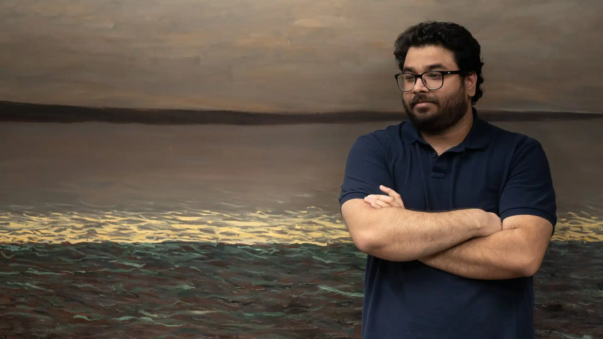 Zaam Arif works primarily between the hours of 8 PM and 4 AM, accompanied by the calm of the night and the evergreen ghazals of Mohammad Rafi and Jagjit Singh, compiled into a playlist by his father, with whom he shares his studio in Houston, Texas. With two artist parents, A.Q. Arif and Mussarat Arif, Zaam Arif’s career as a painter seems fated, despite the circuitous route through which he arrived at it — after being a student of physics, an aspiring writer, a filmmaker, a graphic designer and a photographer. His paintings carry the traces of these past lives, conveying stories in paint that feel as nuanced as novels and as epic as films — while transporting viewers to the heady realm of abstract and existential questions about the nature of presence, home and time.