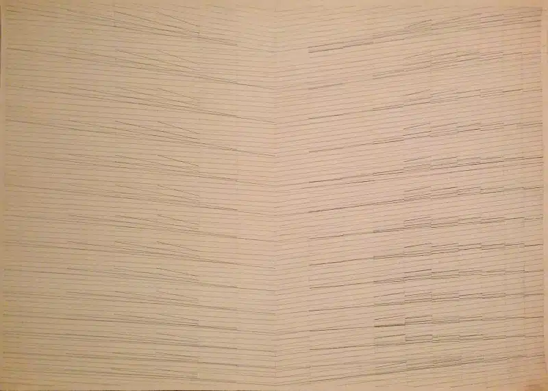 As she built her practice, Mohamedi’s work grew to be characterised by precise lines, careful composition and a meticulous attention to detail, that gallerist Deepak Talwar once called “poetry within structure”. While she became most known for her experiments with grids and lines, a diary entry from March 1971 tells us that her ambitions were beyond formal perfection. Her intention was also to “grasp [her] heritage with intuition, vision and wisdom – with a total understanding of the present.” Here we explore the world of Nasreen Mohamedi to get a deeper understanding of her work, and abstraction at large.