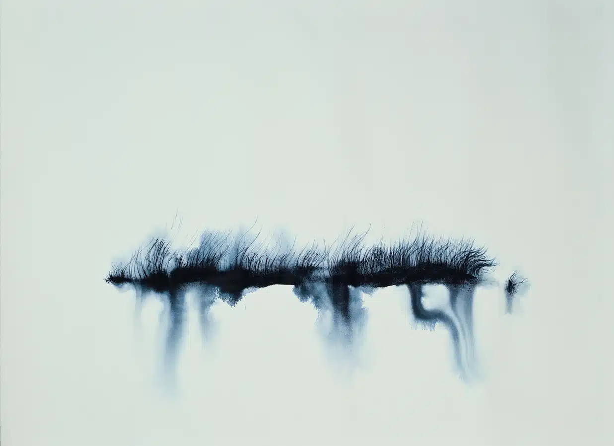 I work predominantly with natural indigo on unbleached handmade textiles like Khadi fabric and other materials such as bronze, terracotta and paper. It requires meticulous attention, and involves making repeated markings which I find very meditative.